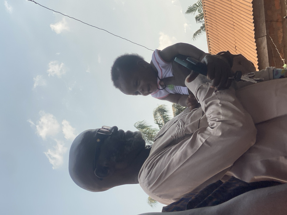 - "An outdoor scene in Aliade, Nigeria, depicts an adult male holding an infant under a bright, partly cloudy sky" by FM-h6TnM2, licensed under CC BY 4.0