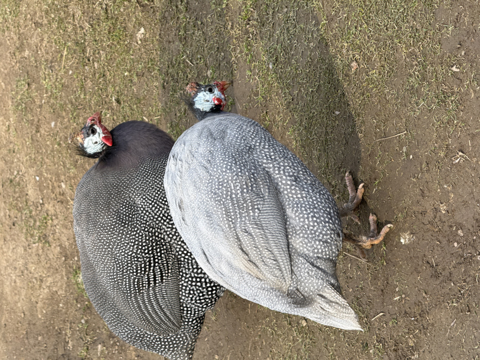 - "Two guinea fowl are observed in Leskovets, Bulgaria" by FM-QK5pm1, licensed under CC BY 4.0