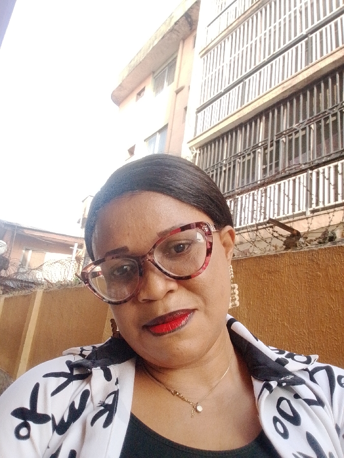 A medium-shot portrait depicts a woman in an urban setting within the city of Agani, Nigeria