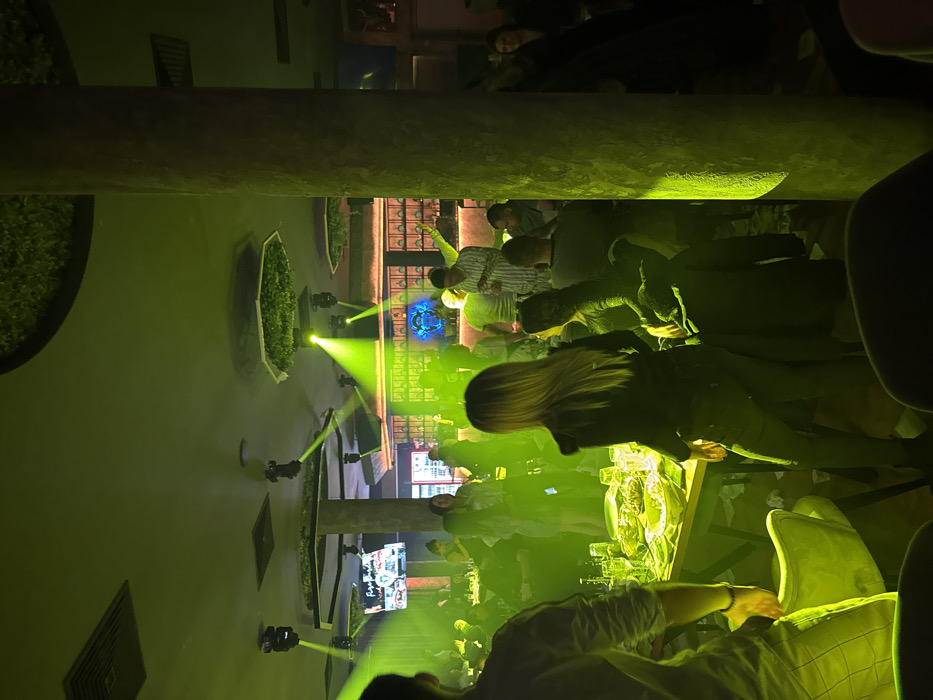 - "The scene depicts the interior of a commercial establishment in Karlovo, Bulgaria, configured as a nightclub, bar, or restaurant, characterized by dim ambient lighting and prominent green spotlight illumination" by FM-Jt09G2, licensed under CC BY 4.0