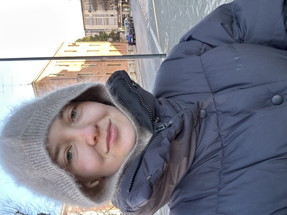 A fair-skinned individual with light eyes and a subtle smile is depicted in a close-up, selfie-style image