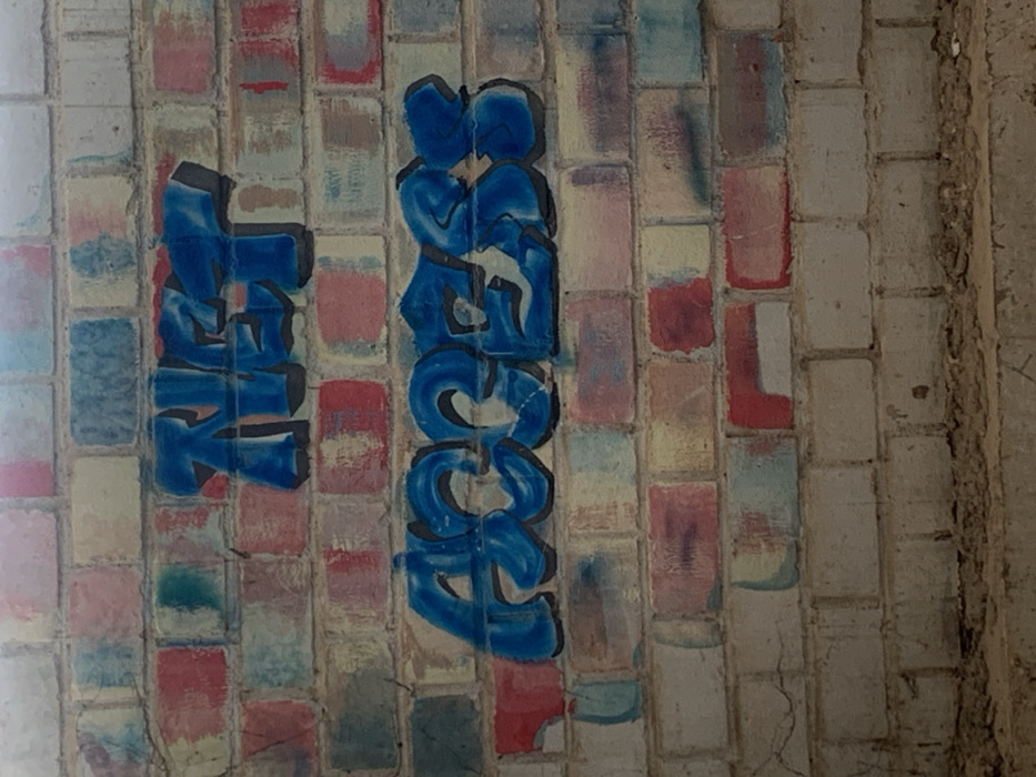 - "In Jos, Nigeria, a close-up image displays a light-colored brick wall featuring graffiti" by FM-4hiJG3, licensed under CC BY 4.0