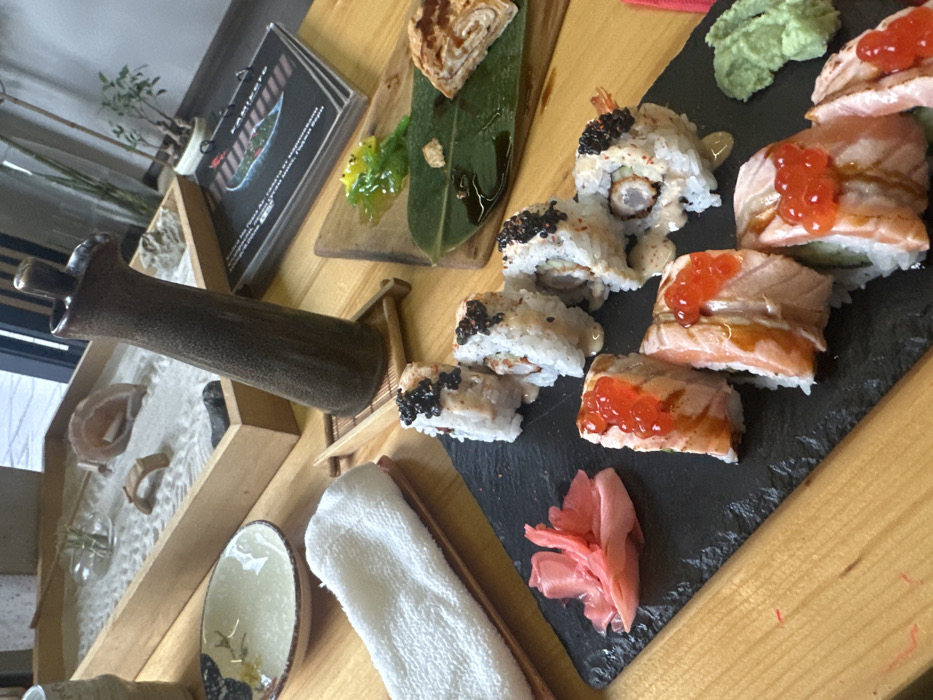 This image captures a close-up view of a dining table set within Kamikere, a Japanese restaurant located in Sofia, Bulgaria
