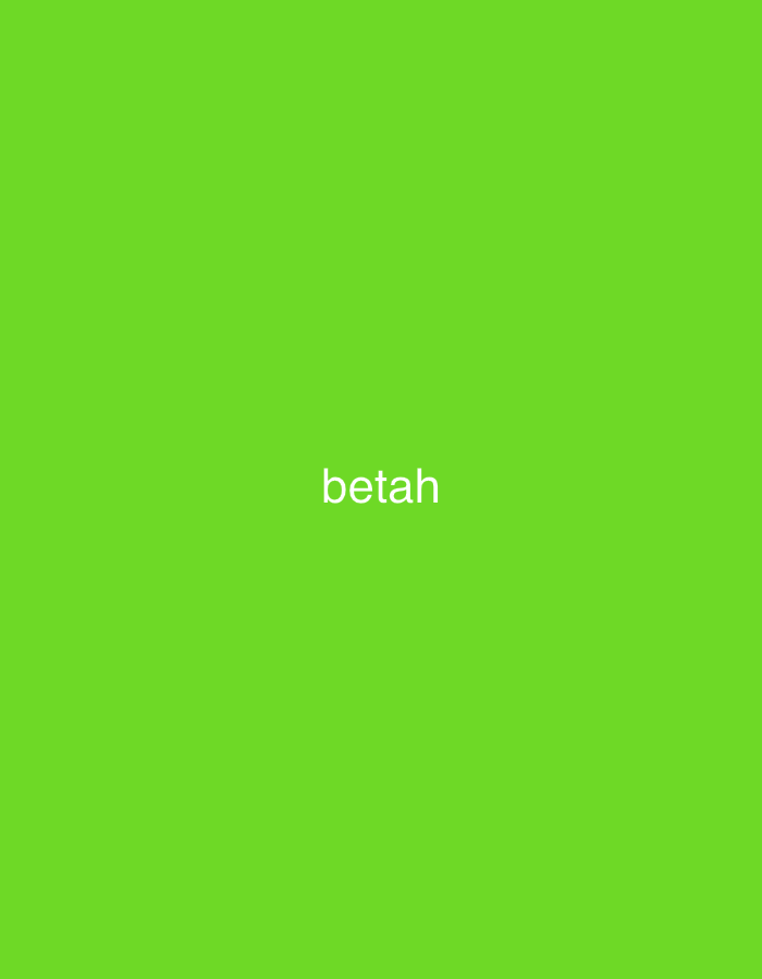 A green background fills the frame. Centered horizontally and vertically, the word "betah" is written in white, sans-serif font. The color is a vibrant, almost neon shade of green, creating a stark contrast with the white text. The overall impression is minimalistic, focusing solely on the word against the solid green backdrop.