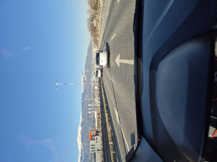 - "The image depicts a driver's perspective from within a vehicle on a multi-lane asphalt highway on a clear, sunny day in the vicinity of German, Bulgaria" by FM-QtvDa2, licensed under CC BY 4.0