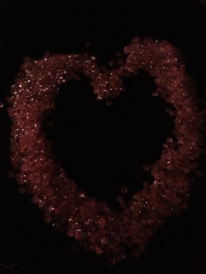 - "The image displays an arrangement of numerous small, spherical, reddish-brown translucent beads forming the outline of a heart shape on a dark, seemingly flat surface" by FM-i0a4E2, licensed under CC BY 4.0
