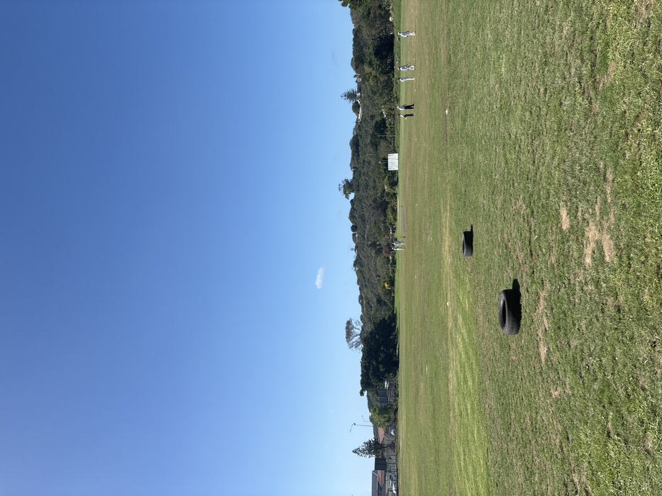 - "The image depicts an outdoor cricket ground under a clear, bright blue sky with one small cumulus cloud near the horizon" by FM-4ddg82, licensed under CC BY 4.0