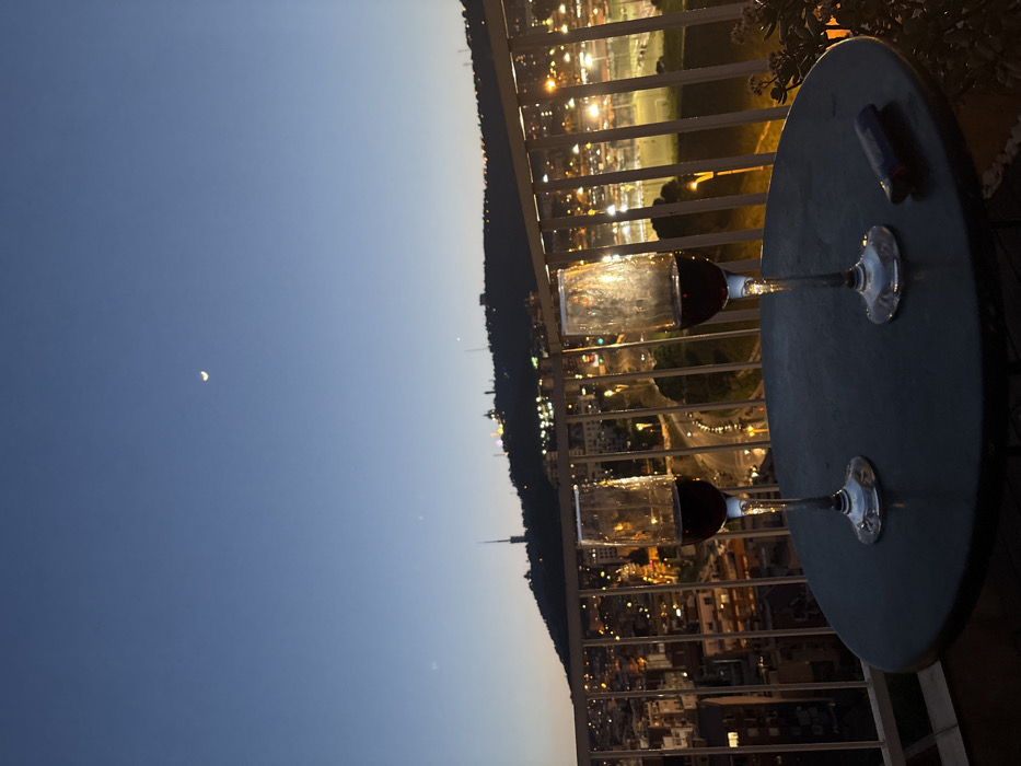 - "The scene depicts a twilight cityscape of Barcelona, Spain, viewed from an elevated outdoor space, likely a balcony or rooftop terrace" by FM-oHkwm1, licensed under CC BY 4.0