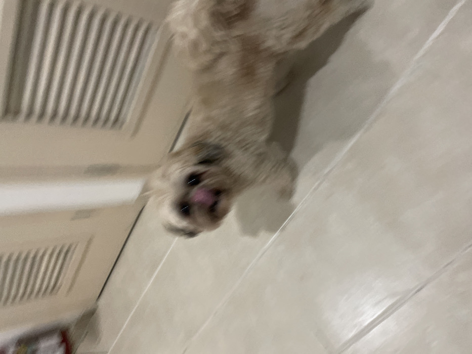 - "The image displays a small, light-furred dog, consistent with a Shih Tzu breed, captured mid-motion on a light-colored tiled floor" by FM-iYMz92, licensed under CC BY 4.0