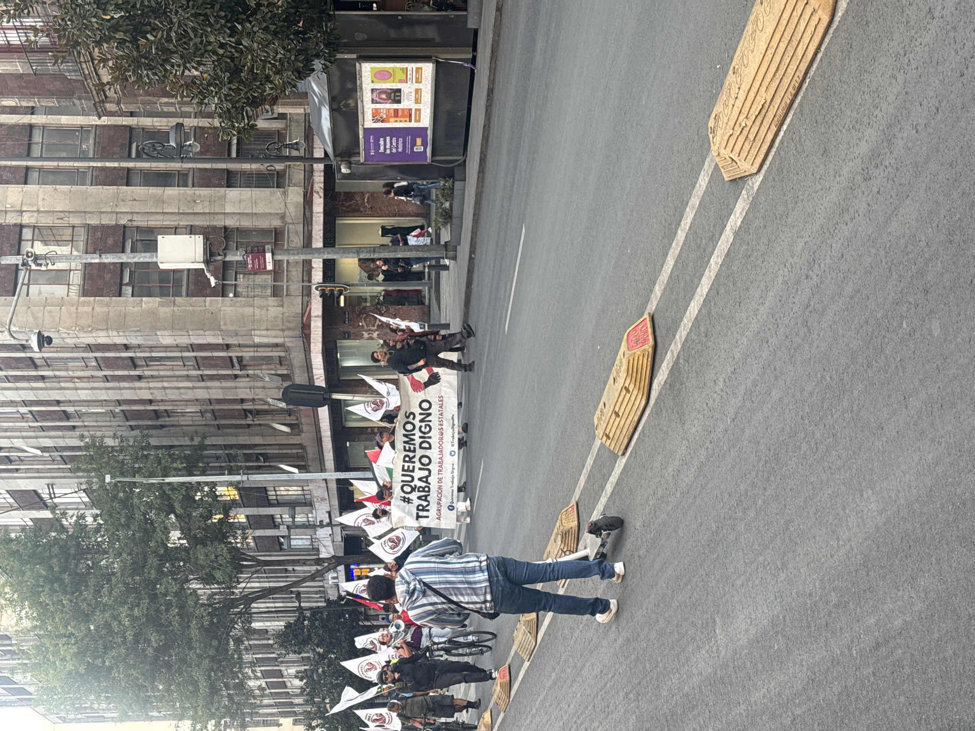 - "An outdoor, daytime street scene in the Historic Center of Mexico City, Mexico, depicts a procession of approximately 15-20 individuals marching from left to right on an asphalt road" by FM-fN5mz1, licensed under CC BY 4.0