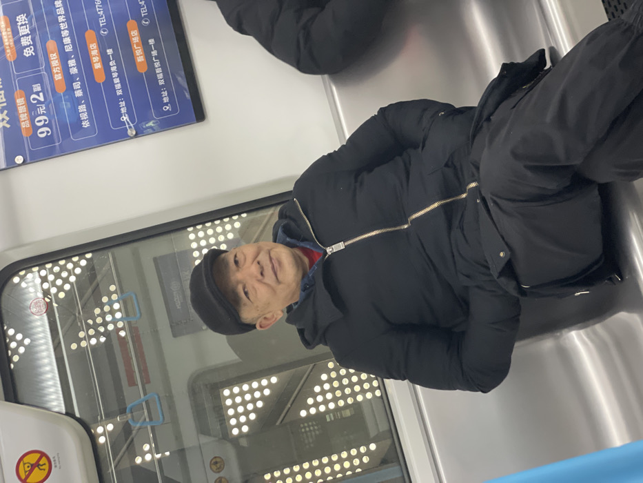 - "An older man in a black hat and winter coat sits on a train or subway" by FM-fMlkl2, licensed under CC BY 4.0