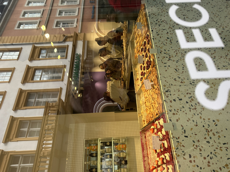 view from inside a bakery in Heidelberg, Germany (latitude 49