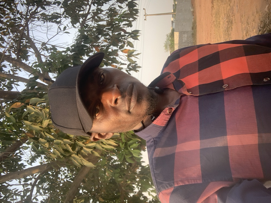 A man in a black baseball cap and red/black plaid shirt faces the camera