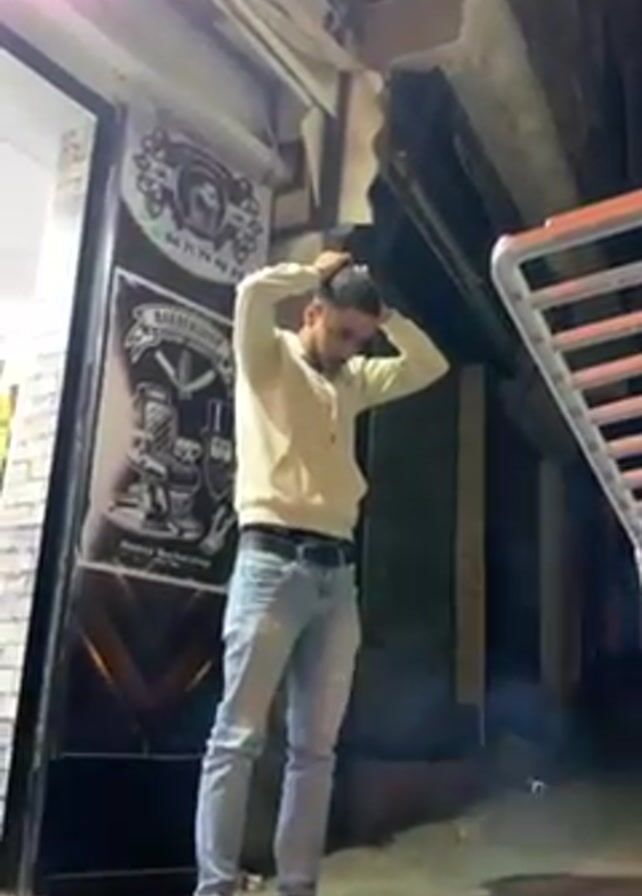 - "A man stands in front of a barbershop, fiddling with his hair" by FM-db0142, licensed under CC BY 4.0