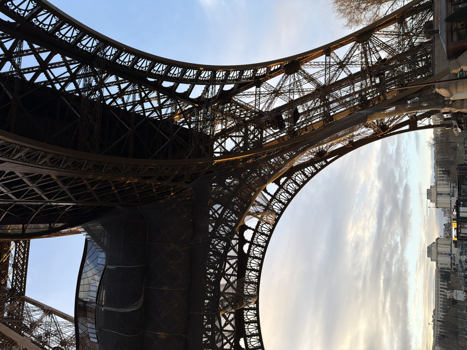 - "An extreme low-angle photograph frames the intricate wrought iron lattice structure of the Eiffel Tower, located in the Champ de Mars, Paris, France" by FM-aXd4u1, licensed under CC BY 4.0