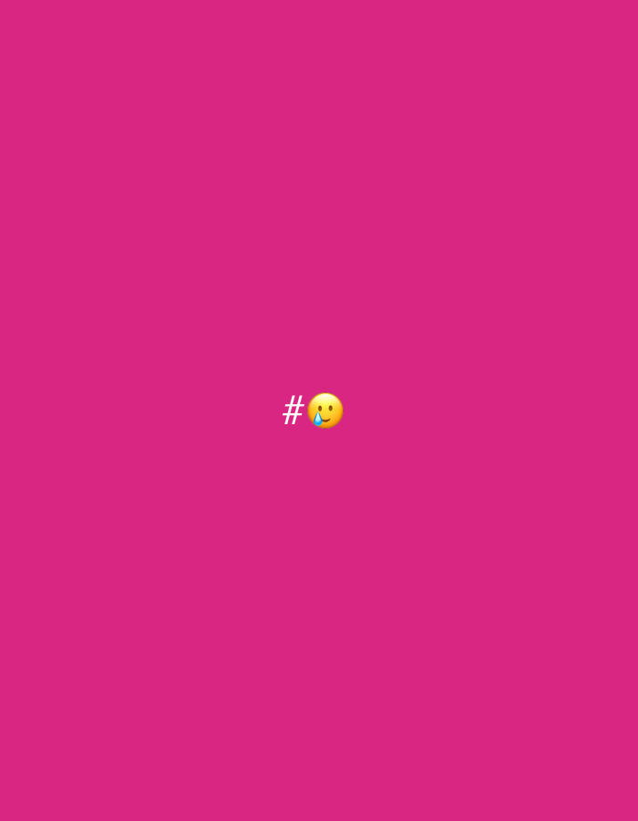 A pink background with a hashtag symbol and a smiling face emoji with a teardrop next to it