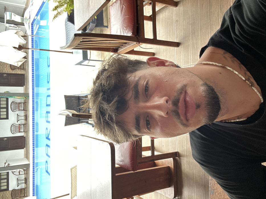 - "A young adult male, approximately 20-35 years old, is centered in the foreground of a selfie, taken at a resort or pousada in Lauro De Freitas, Brazil" by FM-hAR9P2, licensed under CC BY 4.0