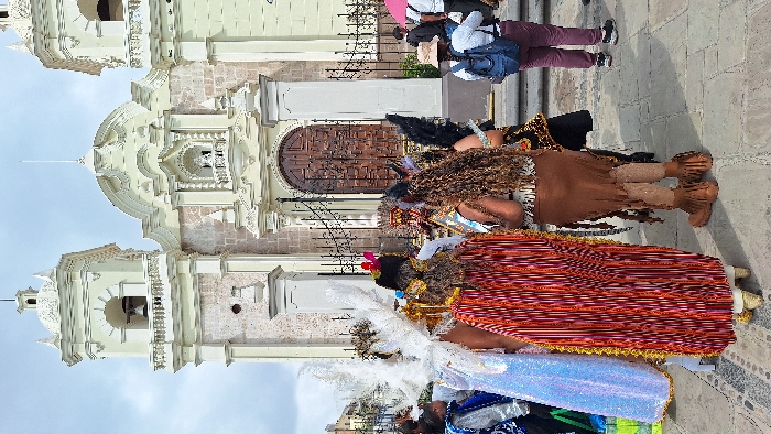 - "A group of people in vibrant, elaborate costumes stand in front of a grand, light-colored church" by FM-b0Aw43, licensed under CC BY 4.0