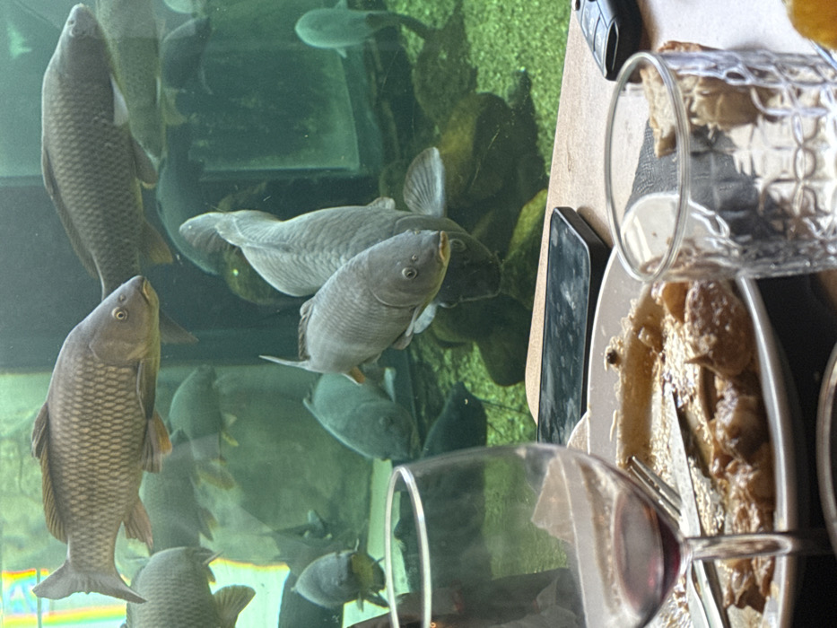 - "The scene depicts an indoor environment, specifically a restaurant or cafe setting adjacent to a large freshwater aquarium, located in Mora, Portugal, likely at the Fluviário de Mora" by FM-k1rMm1, licensed under CC BY 4.0