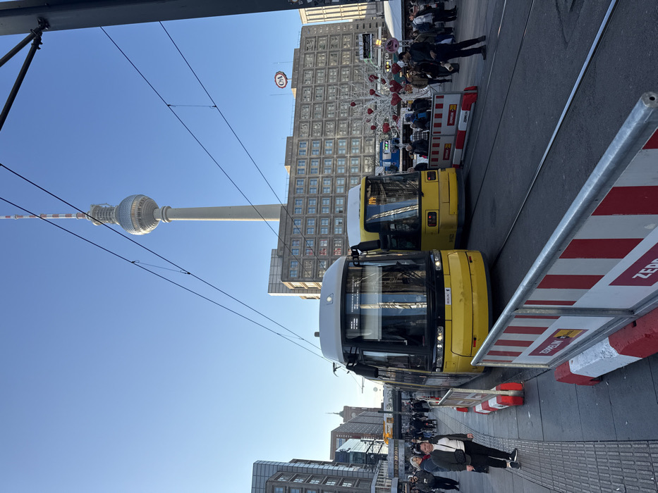 - "This image depicts an urban scene in Berlin, Germany, specifically in the Alexanderplatz area, identifiable by the prominent Fernsehturm (TV Tower) in the background" by FM-wzXZC3, licensed under CC BY 4.0
