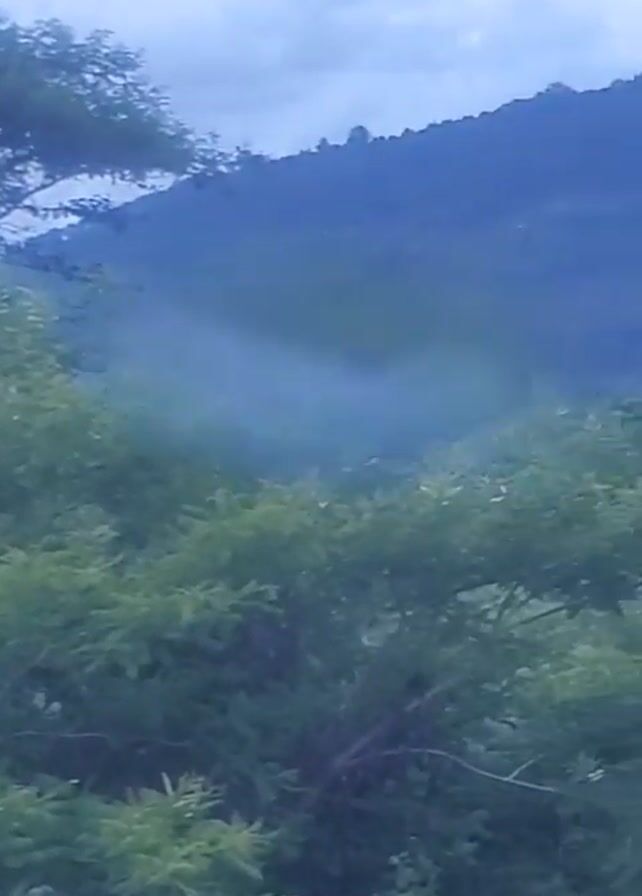 landscape view of mountainous terrain covered with green trees and vegetation under a cloudy sky. The hills or mountains are visible in the background and are covered with trees. The foreground is filled with a thick canopy of green foliage. Some music is playing.