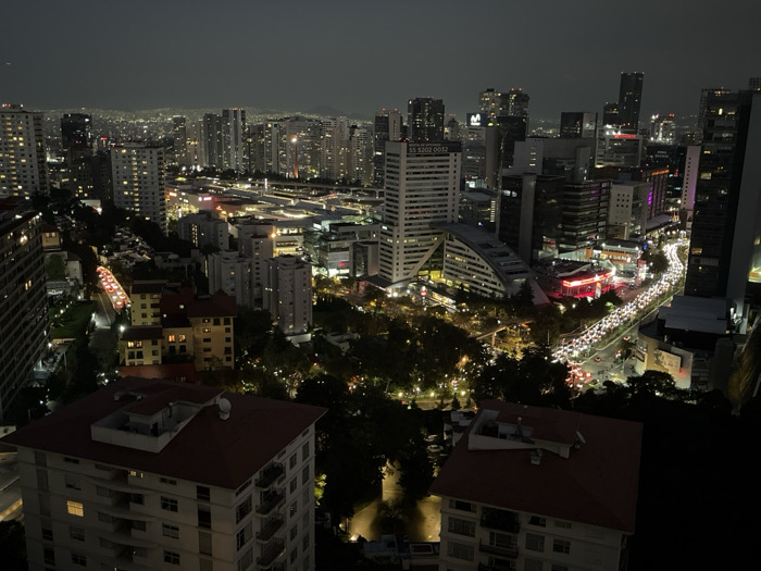 - "The image presents an elevated, wide-angle night view of the Santa Fe district in Mexico City, Mexico" by FM-21Qs12, licensed under CC BY 4.0