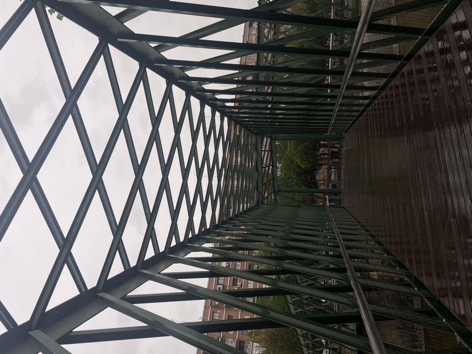 - "The image displays the interior of the Puente Perrault (Puente de la Arganzuela), a pedestrian bridge in Madrid Río Park, Madrid, Spain" by FM-E8Nbf1, licensed under CC BY 4.0