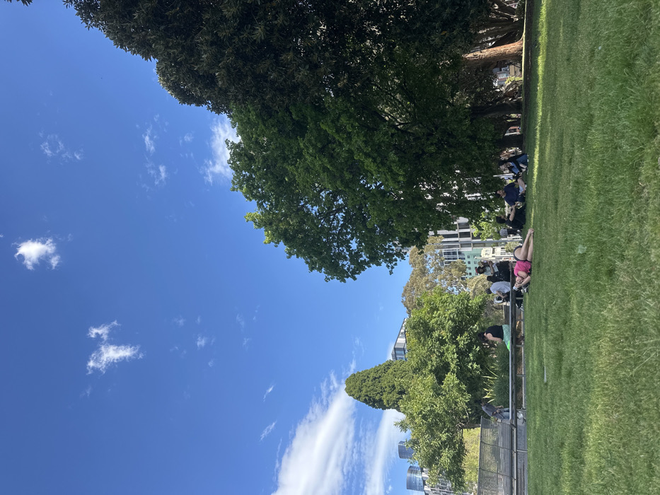 - "The image depicts a park scene under a clear blue sky with scattered white clouds, situated in Carlton, Australia" by FM-P0ePn2, licensed under CC BY 4.0