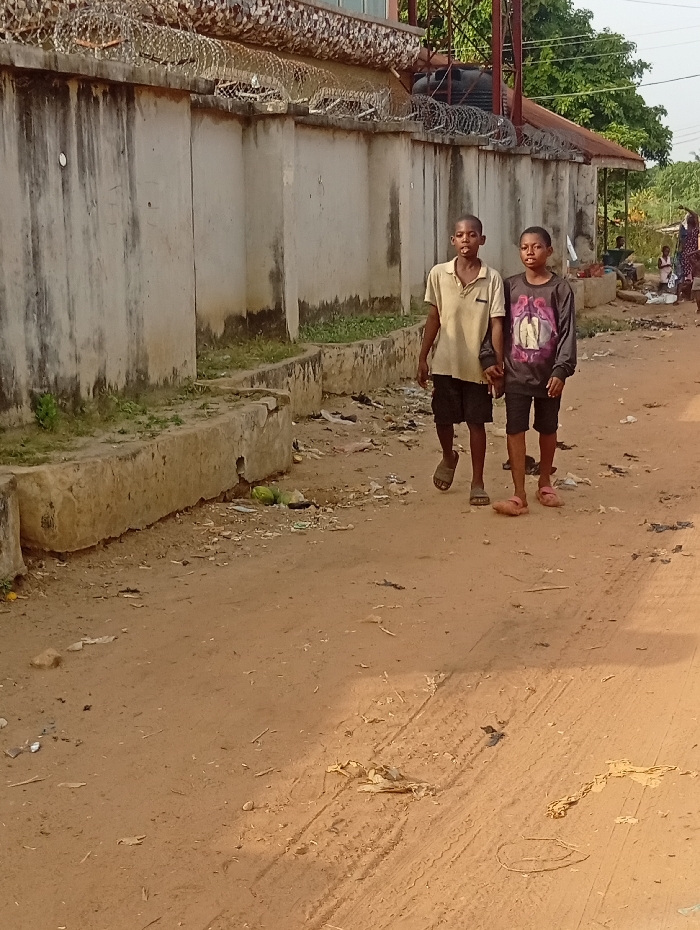 - "The image displays two young males walking forward on an unpaved, reddish-brown dirt road in Isinyi-Nando, Nigeria" by FM-s6GYT2, licensed under CC BY 4.0