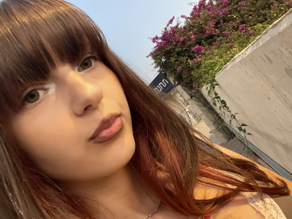 The image displays a slightly tilted selfie of a female individual captured outdoors in Kefar Sava, Israel