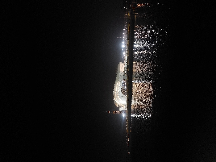 - "A nighttime view shows a large ship docked at a brightly lit pier" by FM-71cTG2, licensed under CC BY 4.0