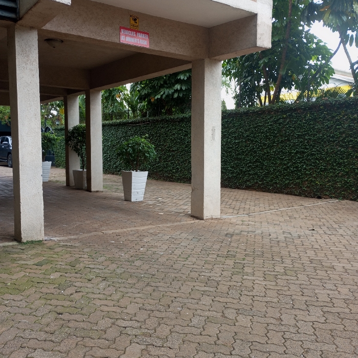 The image displays an unoccupied outdoor area, likely a parking or entranceway, in Kisumu, Kenya