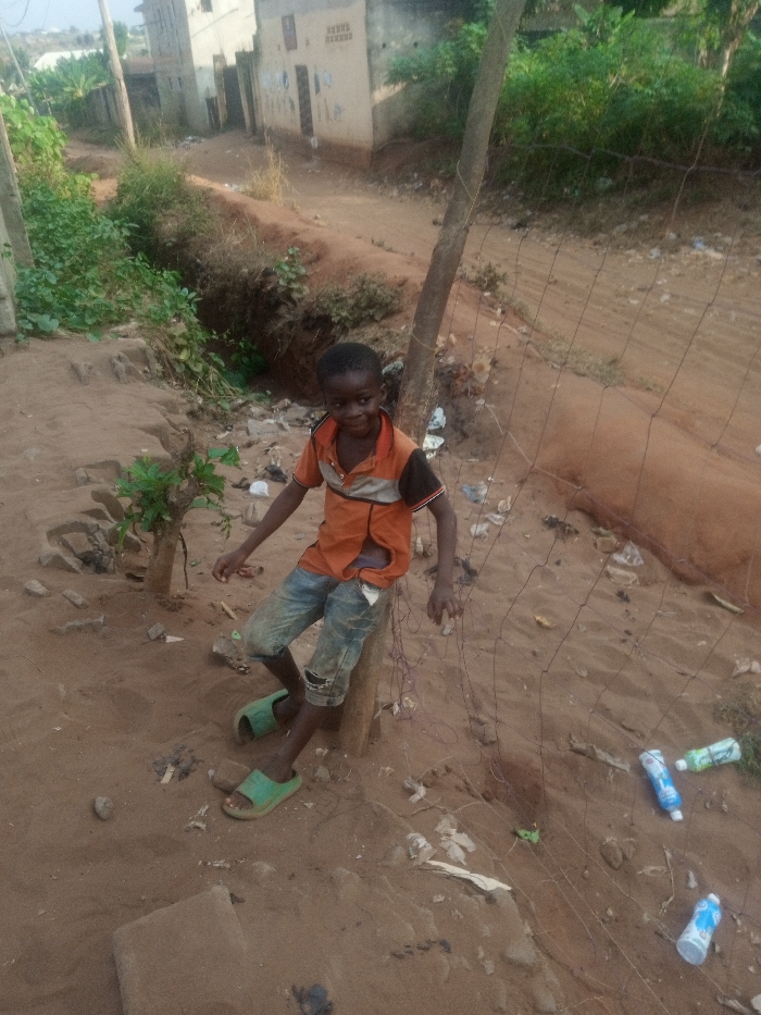 - "An image captured in Nsugbe, Nigeria, depicts a young boy standing on a dirt path" by FM-vKwjt2, licensed under CC BY 4.0
