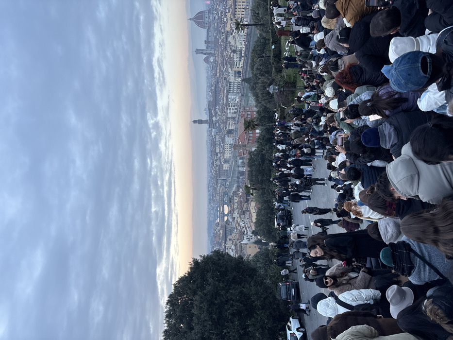 - "This image depicts a crowded panoramic overlook at Piazzale Michelangelo in Florence, Italy, during overcast twilight or early morning" by FM-E1hwL2, licensed under CC BY 4.0