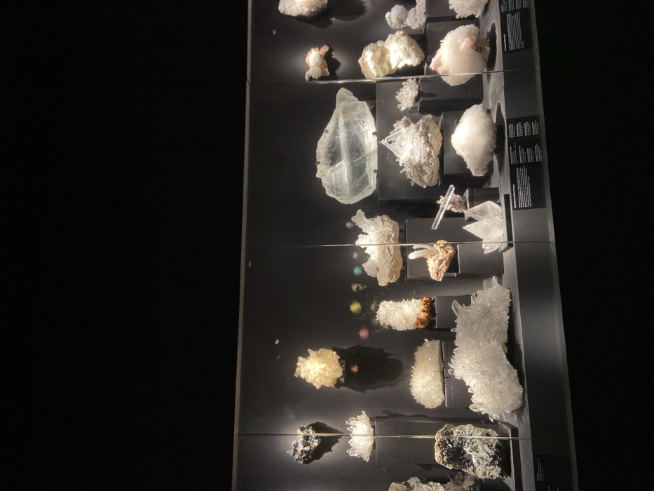 - "A display case in a dimly lit room, containing various mineral specimens, including several clear quartz crystals" by FM-6Rqrz2, licensed under CC BY 4.0