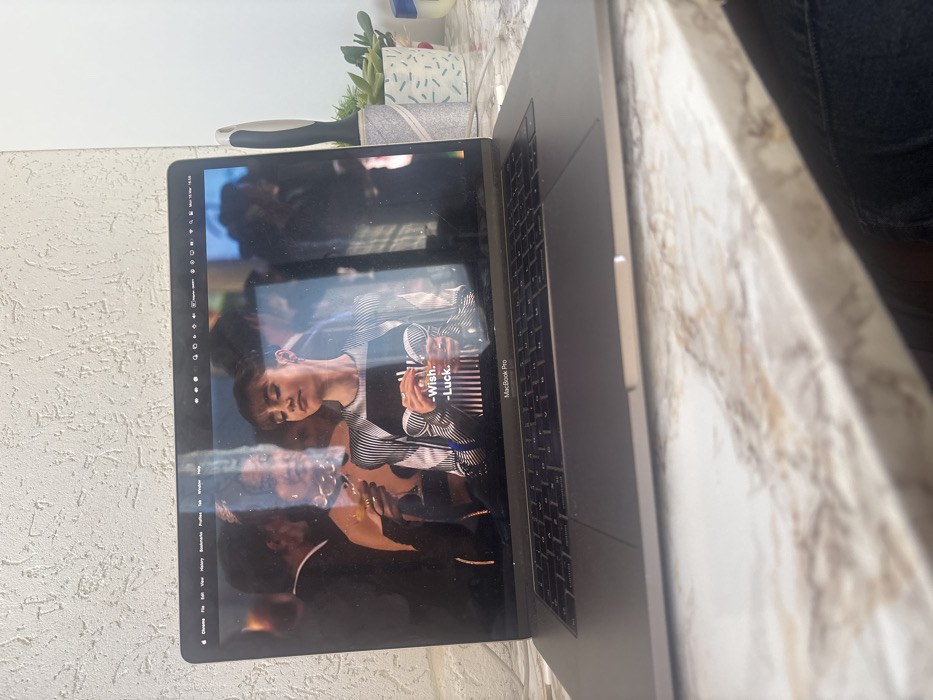 - "A dark gray MacBook Pro laptop is positioned on a light-colored countertop featuring a brown and gray marble pattern" by FM-r8nDs2, licensed under CC BY 4.0