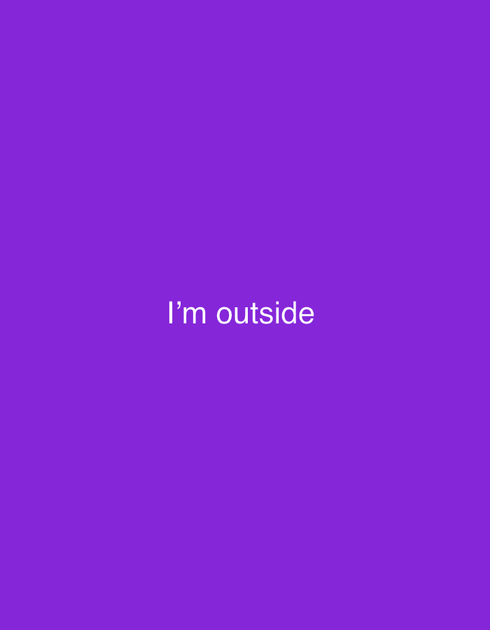 The image has a solid purple background with the text "I'm outside" in white font centered in the middle