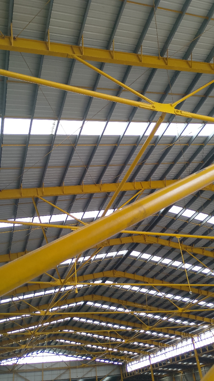 The image displays an upward-facing view of the interior roof structure of a large building situated in Perímetro Urbano Barranquilla, Colombia