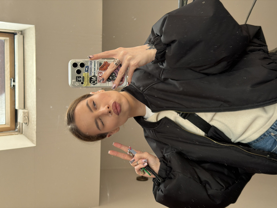 - "An indoor mirror selfie captures a young adult female from the mid-torso upwards, located in Gdańsk, Poland" by FM-nKrUC2, licensed under CC BY 4.0