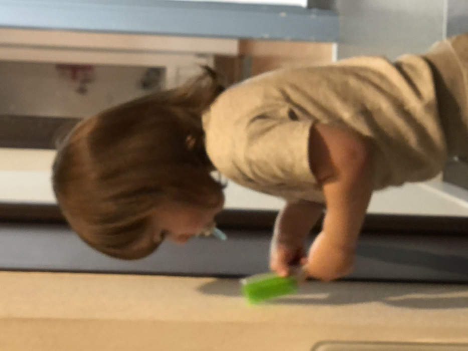 - "A young child is leaning forward, reaching for a green object on a countertop" by FM-vXe4F3, licensed under CC BY 4.0