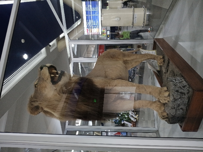 - "A full-body taxidermied adult male lion is centrally displayed within a clear glass enclosure inside the terminal building of Robert Gabriel Mugabe International Airport, Harare, Zimbabwe" by FM-X3Isl2, licensed under CC BY 4.0