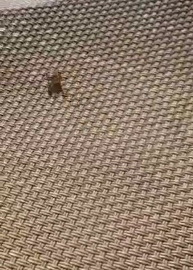 Here's a concise description of the video: The video shows a small brown insect moving across a woven, textured surface