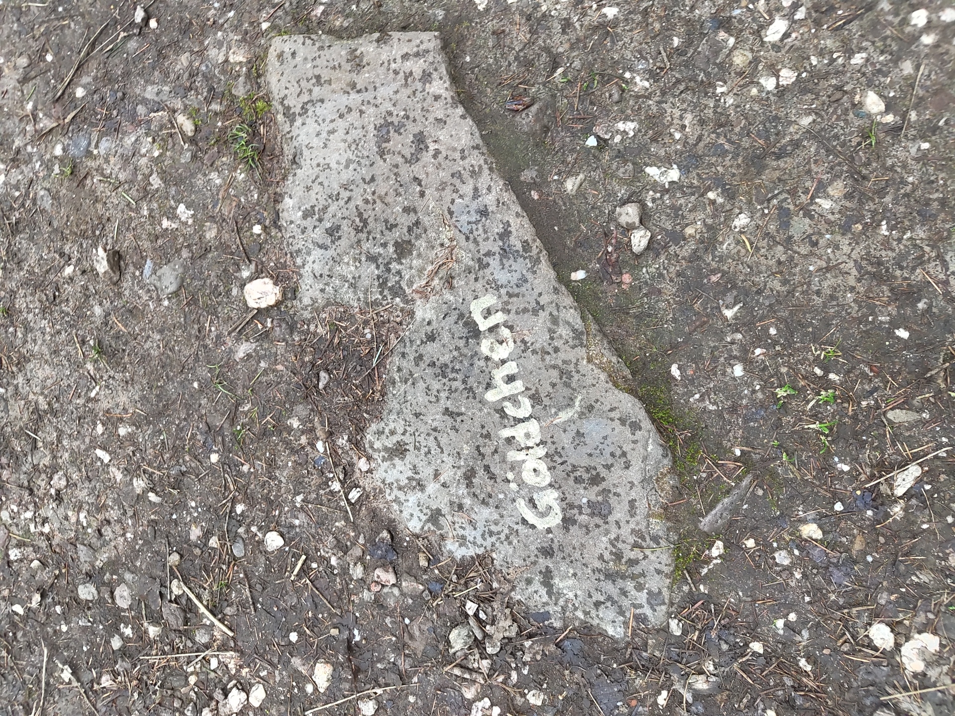 - "The image captures an overhead view of an irregularly shaped, flat grey stone resting on damp, earthy ground, likely a path, in Mettlach, Germany" by FM-uXjJw1, licensed under CC BY 4.0