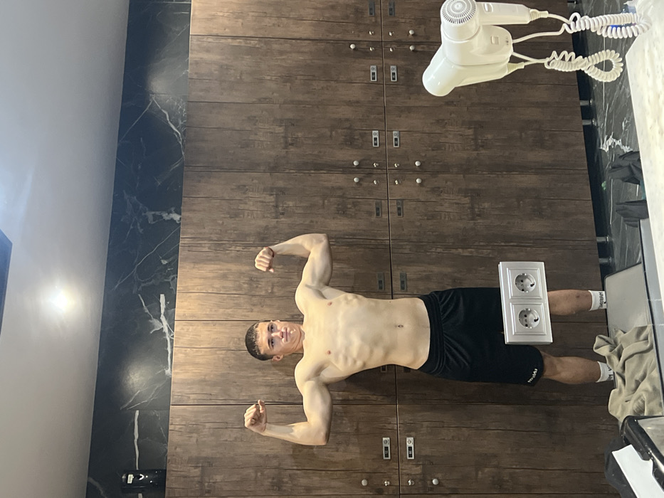 The image captures a young male posing inside what appears to be a changing room or locker facility in Botevgrad, Bulgaria