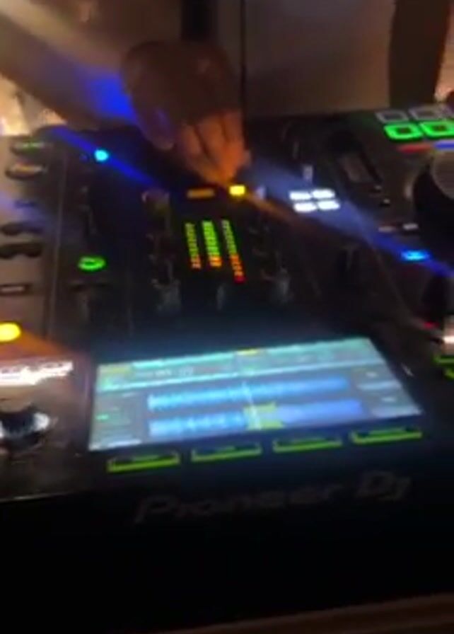 A DJ is at a Pioneer DJ mixing board at what appears to be a party or celebration