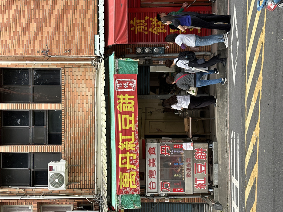 A storefront in Taiwan with a red banner displaying the Chinese characters "香城店" and "萬丹紅豆餅"