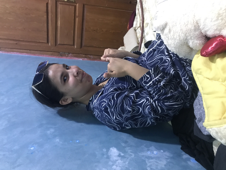 This image, taken in Ouislane, Morocco, shows a young female adult positioned in an indoor setting