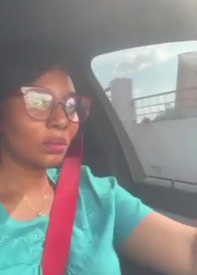 A woman is driving a car