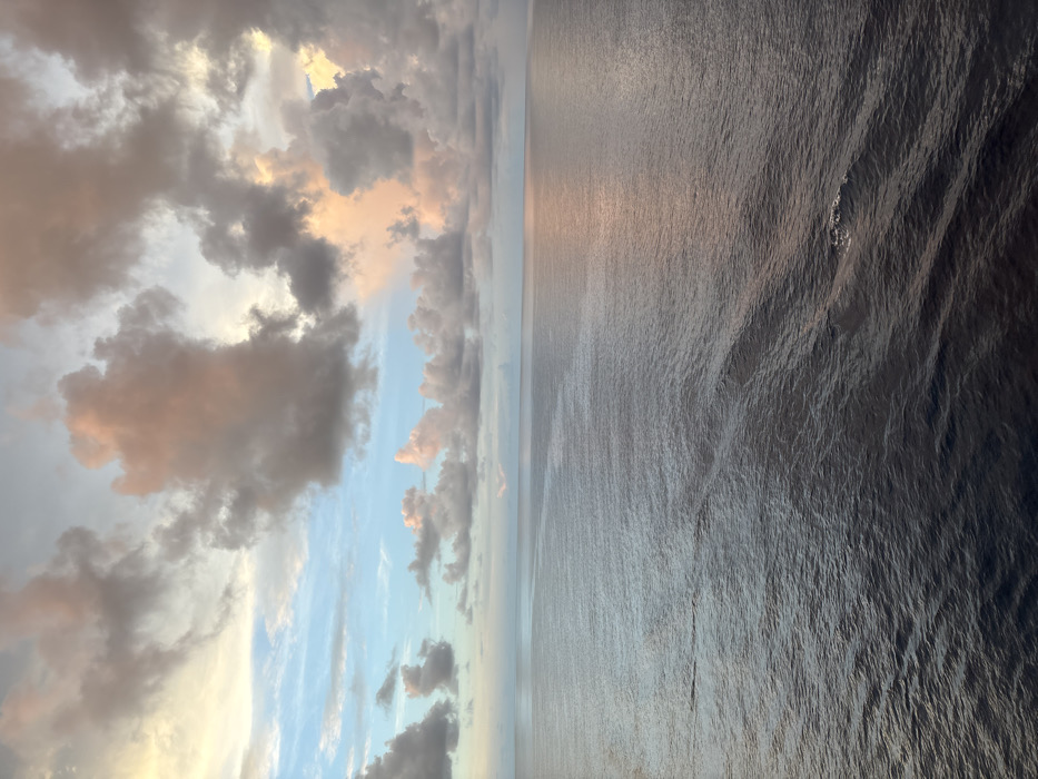 The scene depicts an expansive open ocean and sky, located in the vicinity of Unknown, Cayman Islands