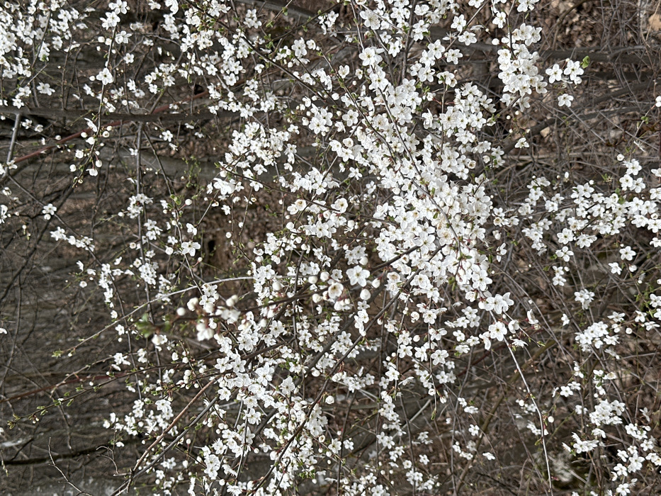 - "The image depicts a close-up view of a flowering shrub or small tree, densely covered in numerous small, white, five-petaled blossoms" by FM-LrxUq1, licensed under CC BY 4.0